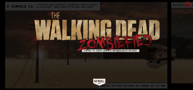 首席設(shè)計(jì)師加文·貝克(Gavin Beck)表示,他們想“在粉絲們可以探索和欣賞的行尸走肉中創(chuàng)造一個(gè)世界”。為了實(shí)現(xiàn)這一點(diǎn),他們應(yīng)用了HTML5、CSS3、Javascript/jQuery、Web音頻/HTML5音頻和視差滾動(dòng)等技術(shù)和技術(shù)。